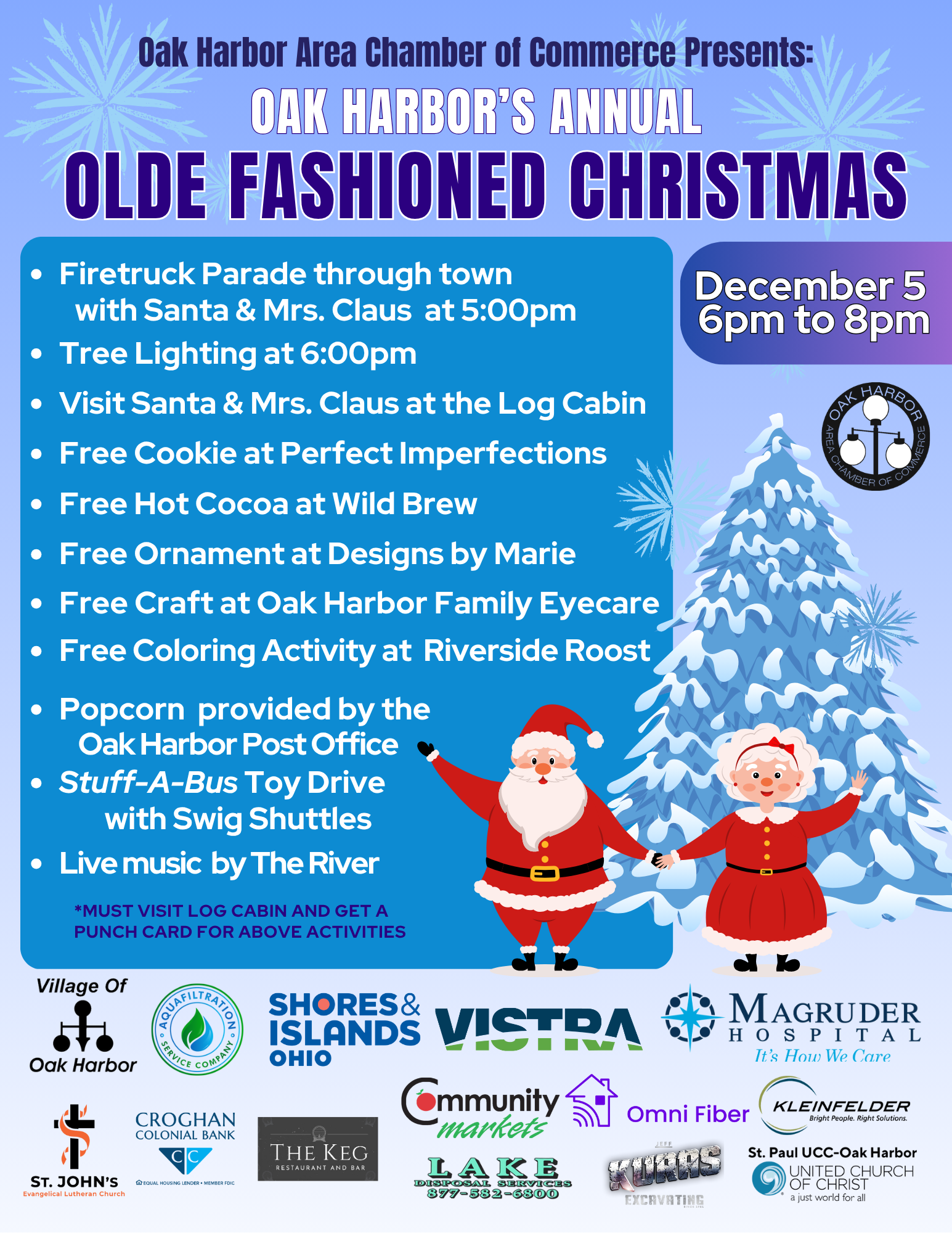 On Friday December 5, 2025 at 5:15pm Santa’s friends from the Portage District Fire Department will be guiding him through the streets of the village as he announces his arrival and opens the 2025 Holiday Season. At 6:00pm Santa and Mrs. Claus will arrive at the Log Cabin to light the Village Christmas Tree and to visit with the children.